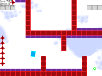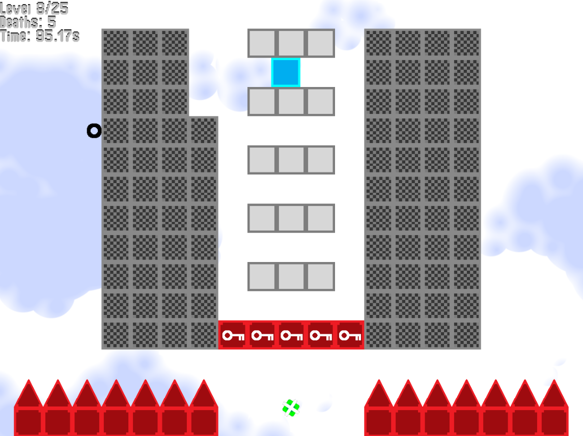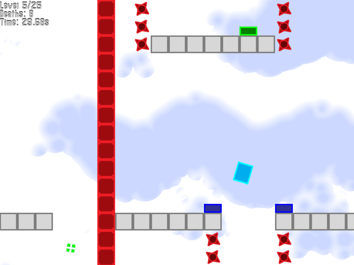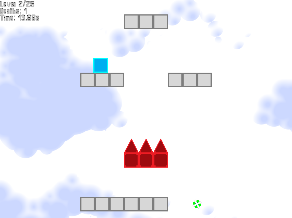 "Freefall" is a puzzle platformer with a twist. Your screen edges loop you back around to the opposite side! Solve 25 puzzles in the shortest time and least deaths possible while dodging spikes and other hazards to claim victory.